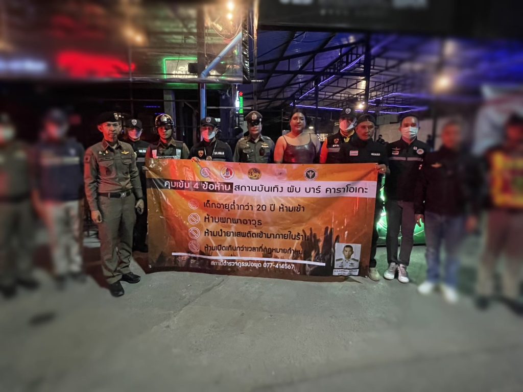 วันที่ 28 ธันวาคม 2565 เวลา 22.00น.-23.30 น. พ.ต.อ.ยุทธนา ศิริสมบัติ ผกก.สภ.บ่อผุด , พ.ต.ต.วรรณชัย สุขแจ่ม สวป.สภ.บ่อผุด , พ.ต.ต.ภานุมาศ ชูเกื้อ สว.สส.สภ.บ่อผุด,เจ้าหน้าที่ตำรวจตรวจคนเข้าเมือง,เจ้าหน้าที่ตำรวจท่องเที่ยว,เจ้าหน้าที่ฝ่ายปกครองอำเภอเกาะสมุย,เจ้าหน้าที่ กอ.รมน. ร้อยเวร 20 ,ชุดสืบ สภ.บ่อผุด สายตรวจเฉวง เขต 1-2 พร้อมชุด ชป.ร่วม ปล่อยแถวประชาสัมพันธ์ผู้ประกอบการสถานบันเทิง/คล้ายสถานบันเทิง ผับ บาร์ คาราโอเกะ ในพื้นที่รับผิดชอบ เน้น มาตรการป้องกันตนเอง ในช่วงเทศกาลส่งท้ายปีเก่าตอนรับปีใหม่ เพื่อป้องกันอาชญากรรม ในสถานประกอบการ เน้นย้ำเรื่องมาตราการรักษาความปลอดภัยและมาตรการ ต่างๆ ดังนี้