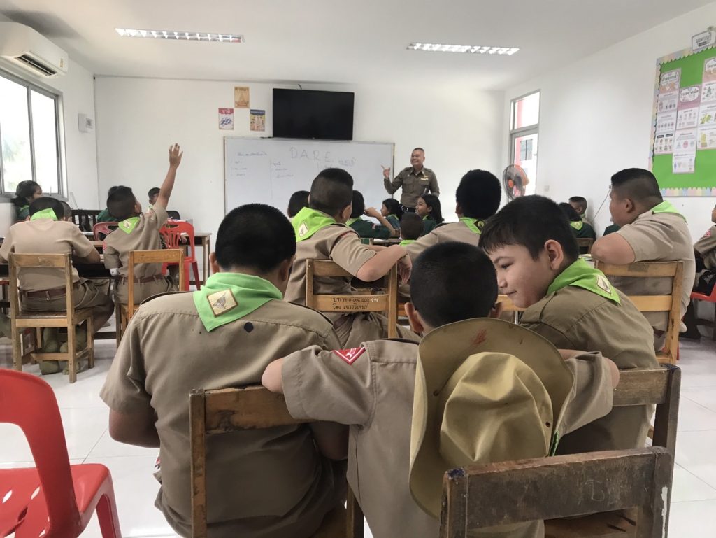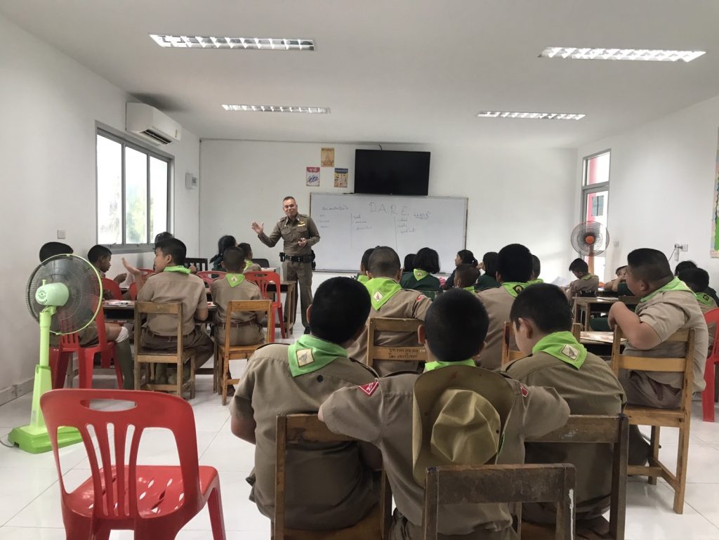 ร.ต.ต.มานะ สังข์แก้ว รอง สว.(ป) สภ.บ่อผุด ครูตำรวจ D.A.R.E. ทำหน้าที่วิทยากรครูตำรวจ D.A.R.E. ให้ความรู้ตาม