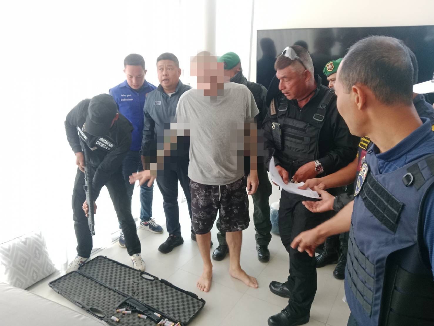 ซึ่งเป็นบ้านพักของ นายนิกิต้า อายุ 38 ปี สัญชาติรัสเซีย พบอาวุธปืนลูกซองยาวคอมมานโด จำนวน 1 กระบอก พร้อมกระสุนปืนลูกซอง 14 นัด อาวุธปืนพกสั้น กล็อก 1 กระบอก พร้อมกระสุน จำนวนหนึ่ง ตรวจสอบไม่พบเอกสารในการ ครอบครอง ทางเจ้าหน้าที่จึงได้ยึดไว้เป็นหลักฐาน พร้อมกันนี้ ได้ทำการตรวจยึดรถยนต์จำนวน 2 คัน เป็นรถยนต์เก๋งหรูเปิดประทุน BMW สีฟ้าอ่อน ทะเบียน 7กฒ-5095 กรุงเทพมหานคร และรถยนต์กระบะฟอร์ด สี่ประตูสีดำ ไม่ติดแผ่นป้ายทะเบียน 1 คัน รถจักรยนต์ หรู Ducati สีแดง 1 คัน