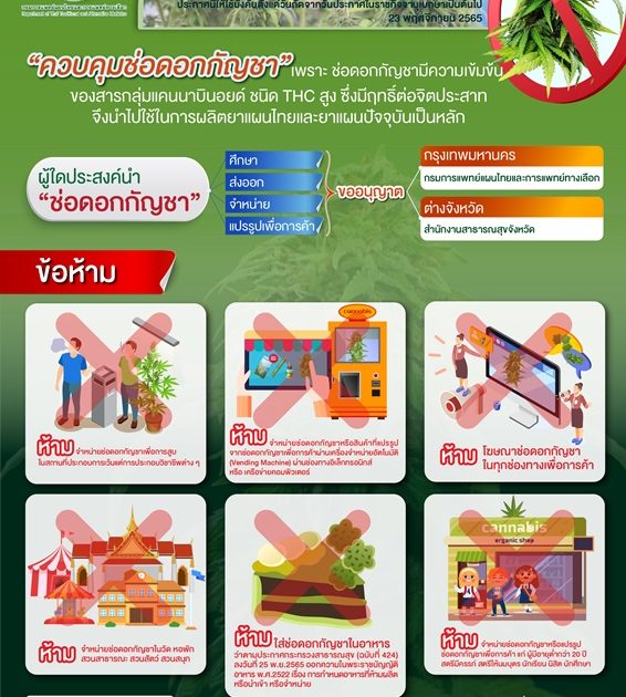 ห้าม จำหน่ายช่อดอกกัญชาในวัด หอพัก สวนสาธารณะ สวนสัตว์ สวนสนุก