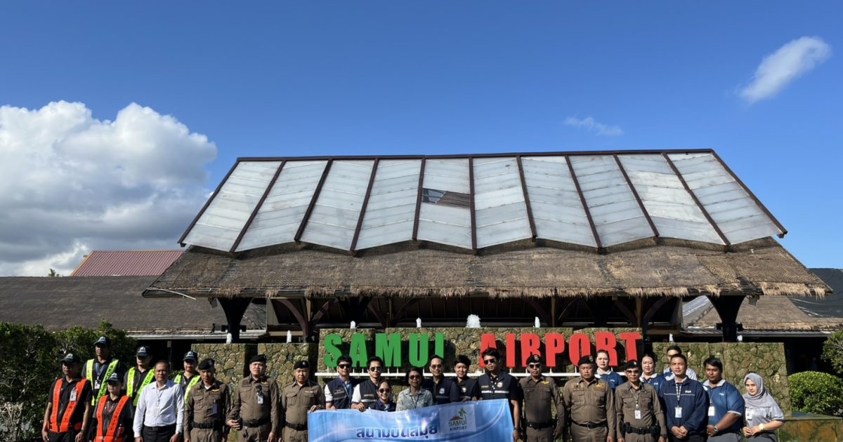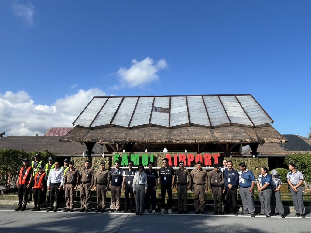 พร้อมตร.สนามบิน,ตร.ท่องเที่ยวเกาะสมุยร่วมปล่อยแถวกิจกรรมเตรียมความพร้อมเพื่ออำนวยความสะดวกและรักษาความปลอดภัยนักท่องเที่ยวในช่วงเทศกาลปีใหม่พ.ศ.2568สนามบินเกาะสมุย