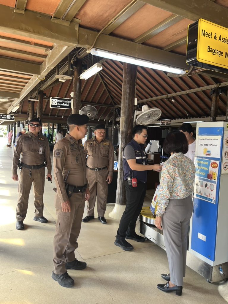 โดยมี ผู้อำนวยการฝ่ายประชาสัมพันธ์เป็นประธานในพิธี พร้อมคณะรักษาความปลอดภัยสนามบิน ตรวจเยี่ยมประชาสัมพันธ์มาตรการรักษาความปลอดภัย ร้านค้าต่างๆภายในสนามบิน