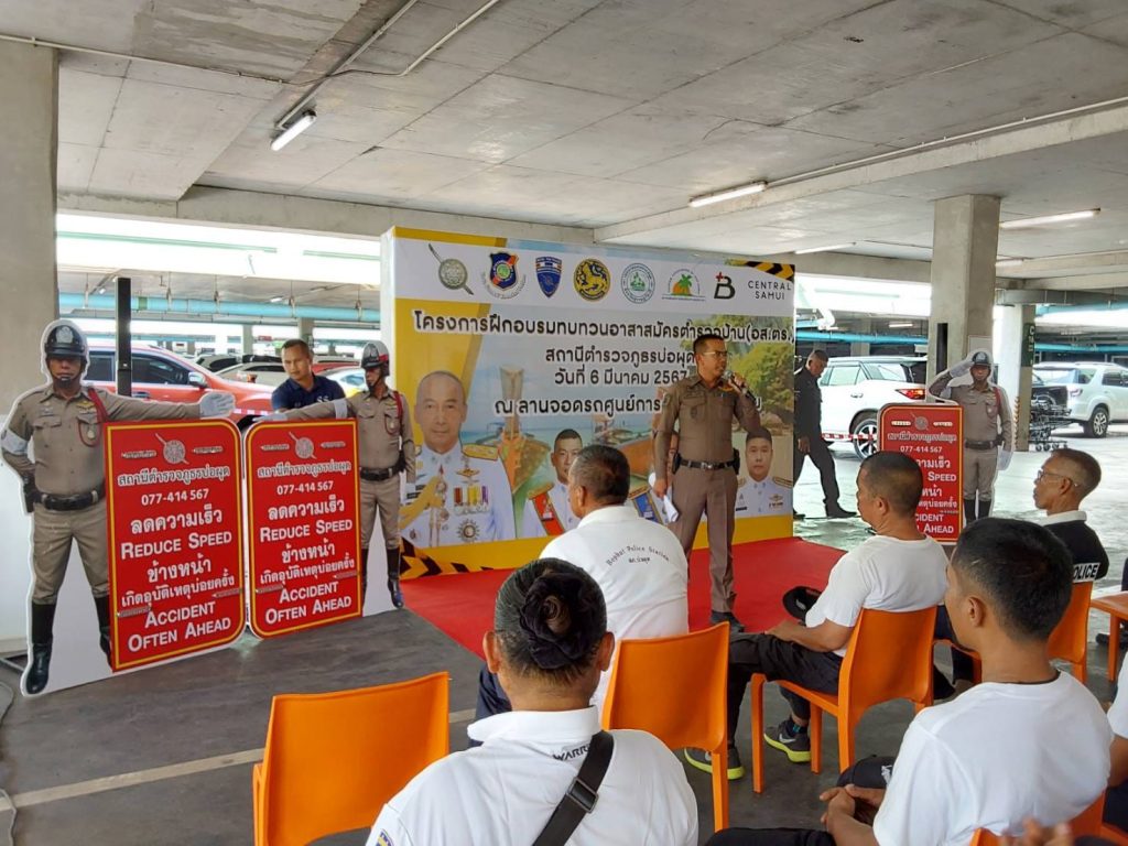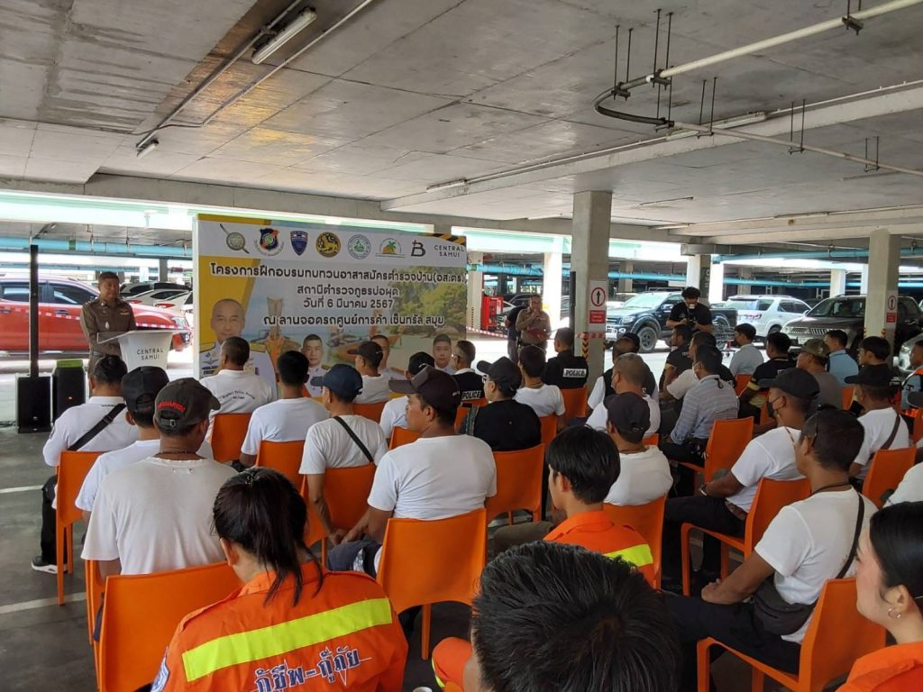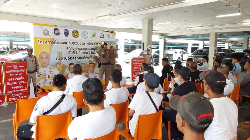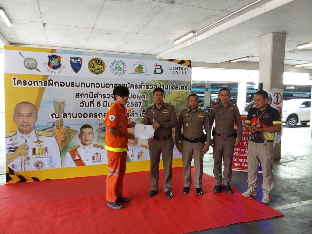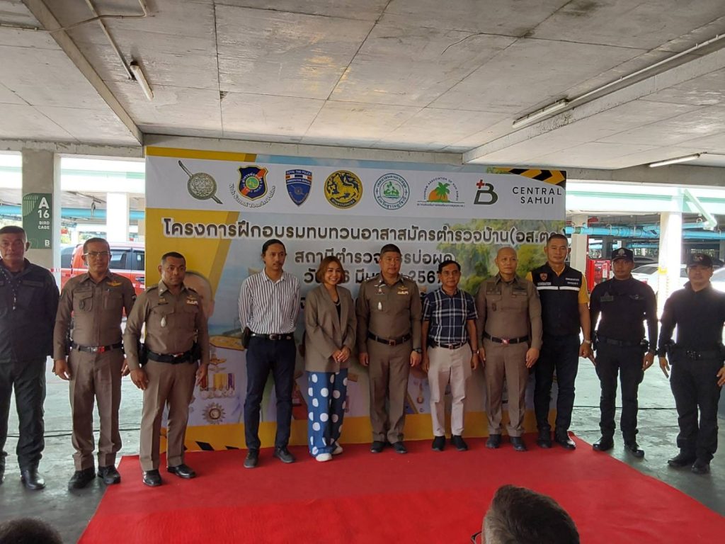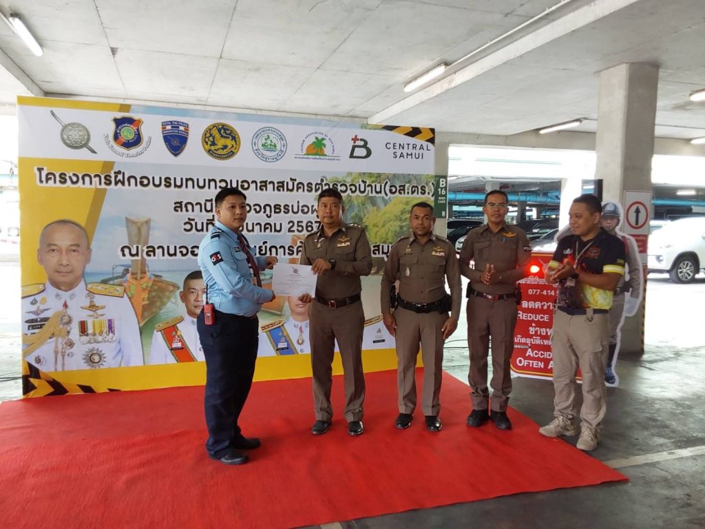 และคณะวิทยากร จาก สภ.บ่อผุด พร้อมด้วย ตำรวจท่องเที่ยว, ตรวจคนเข้าเมือง พท.เกาะสมุย, ฝ่ายปกครองอำเภอเกาะสมุย, สมาคมส่งเสริมการท่องเที่ยวเกาะสมุย, ตัวแทนผู้บริหารห้างเซ็นทรัลเฟสติวัลสมุย, รพ.บ้านดอนอินเตอร์เนชั่นแนลสมุย, สมาคมกู้ชีพกู้ภัยเกาะสมุย และหน่วยงานต่างๆในพื้นที่ ร่วมพิธีเปิดโครงการฝึกอบรมทบทวนอาสามัครตำรวจบ้าน(อส.ตร.) สภ.บ่อผุด ณ ลานจอดรถห้างเซ็นทรัลเฟสติวัลสมุย มีอาสาสมัครตำรวจ อาสาสมัครจราจร จนท.รักษาความปลอดภัยฯ ร่วมอบรมประมาณ 70 คน