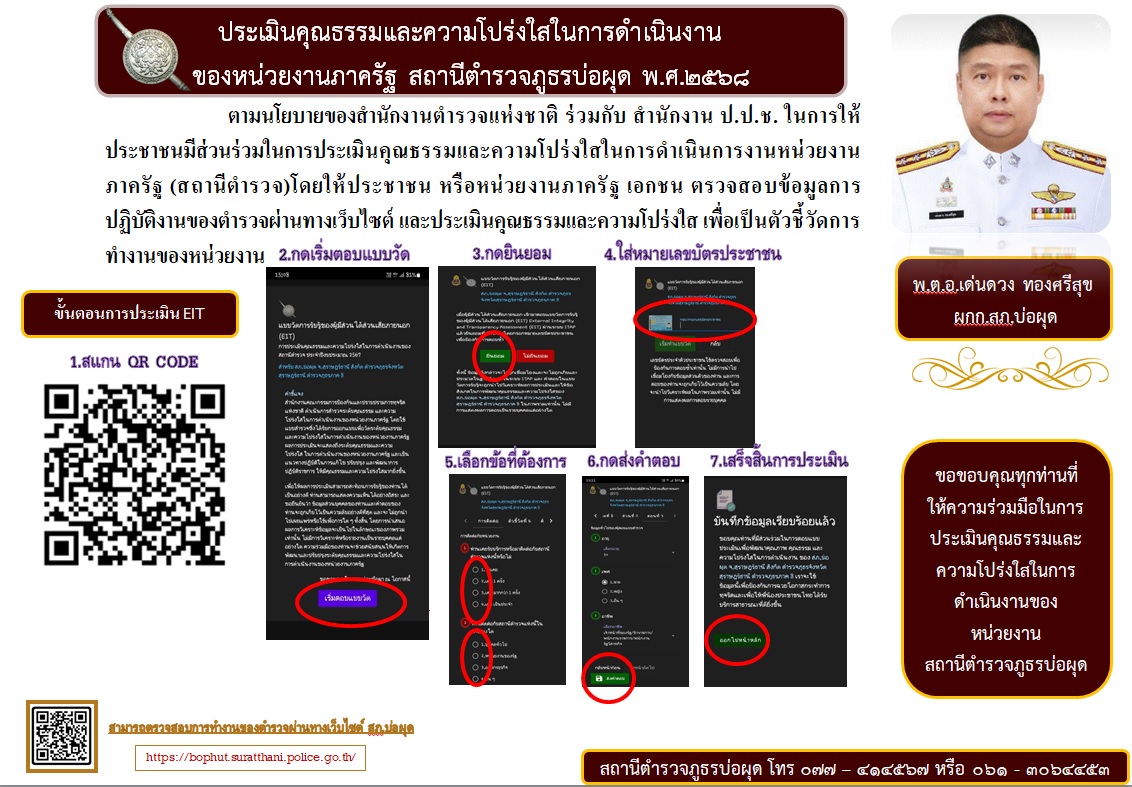 ตามนโยบายของสำนักงานตำรวจแห่งชาติ ร่วมกับ สำนักงาน ป.ป.ช.ในการให้ประชาชนมีส่วนร่วมในการประเมินคุณธรร