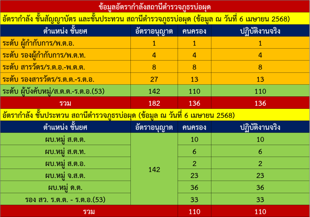 ข้อมูลอัตรากำลัง สถานีตำรวจภูธรบ่อผุด