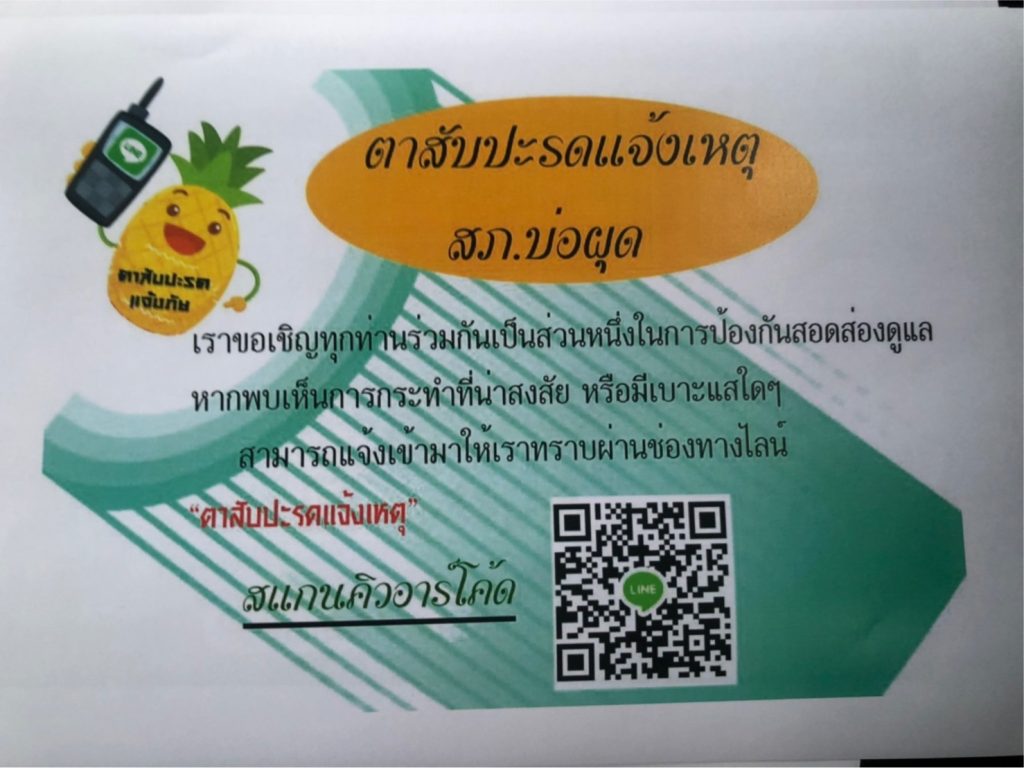 สภ.บ่อผุด ได้จัดทำเพจ Facebook และ กลุ่มไลน์ “ตาสัปปะรด” เพื่อให้ประชาชนในพื้นที่มีส่วนร่วมในการป้องกันสอดส่องดูแล แจ้งข่าวสาร และรับทราบข่าวสารการปฏิบัติของ สภ.บ่อผุด ได้อย่างรวดเร็ว